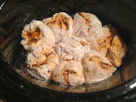 Now I'm supposed to take this and cut it up into pieces? Are you kidding me? At this point I'm laughing like a hyena because goodness knows my kitchen, my clothes, my poor cat, EVERYTHING is covered in flour and now I have to transfer 10-12 pieces to my slow cooker! I cut up 8 "pieces" and put them in the slow cooker, praying for a miracle.